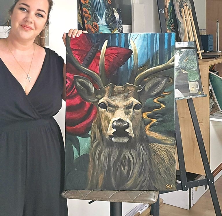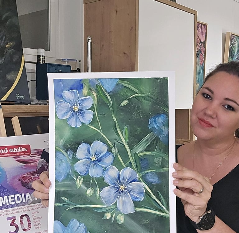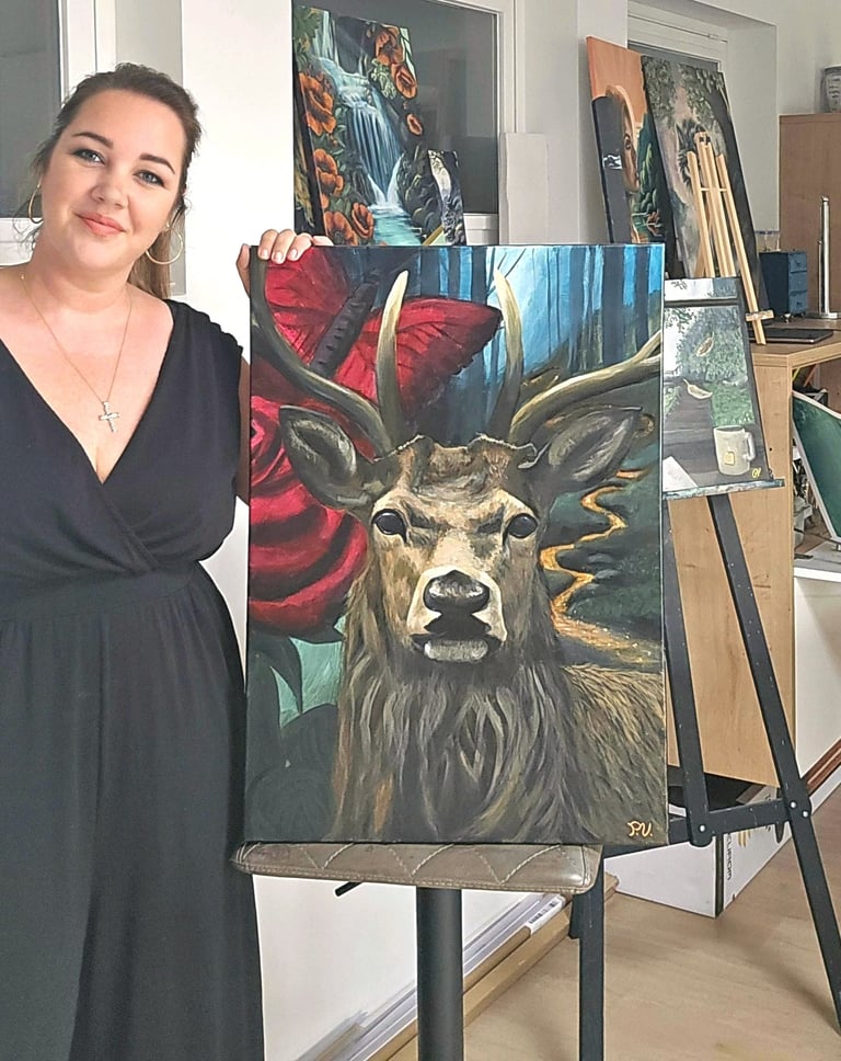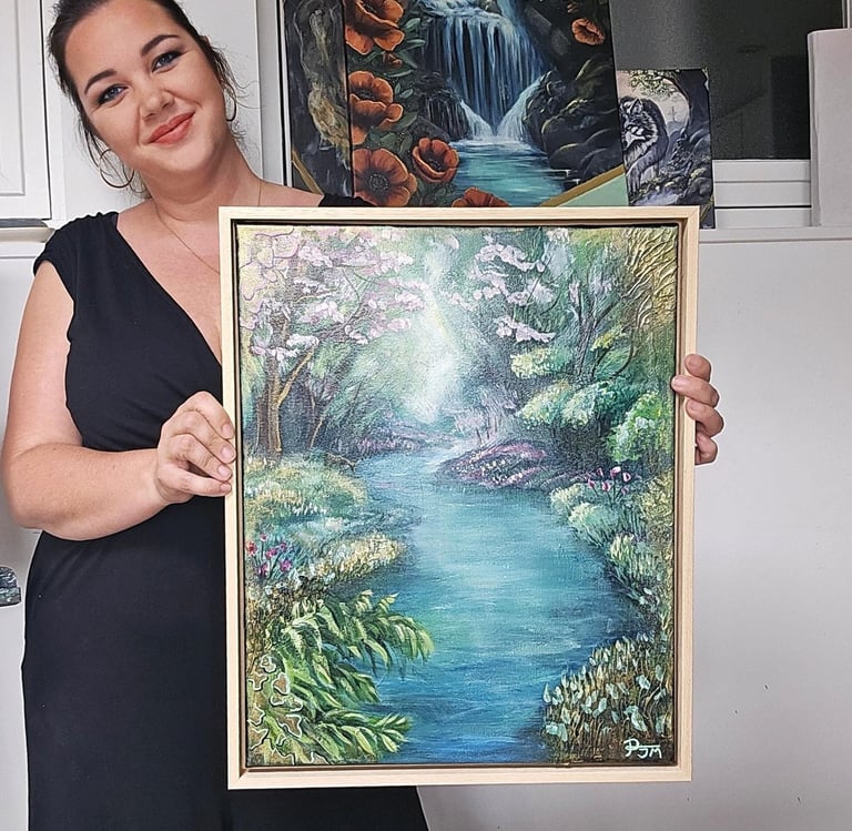"With every brushstroke, I try to capture the dreamlike wonder of the countless worlds that come alive through the pages of a book —glimpses into vast universes where time slows, the soul finds rest, and imagination knows no bounds, hoping that you too might feel the calm, the awe, and the beautiful escape they bring me."