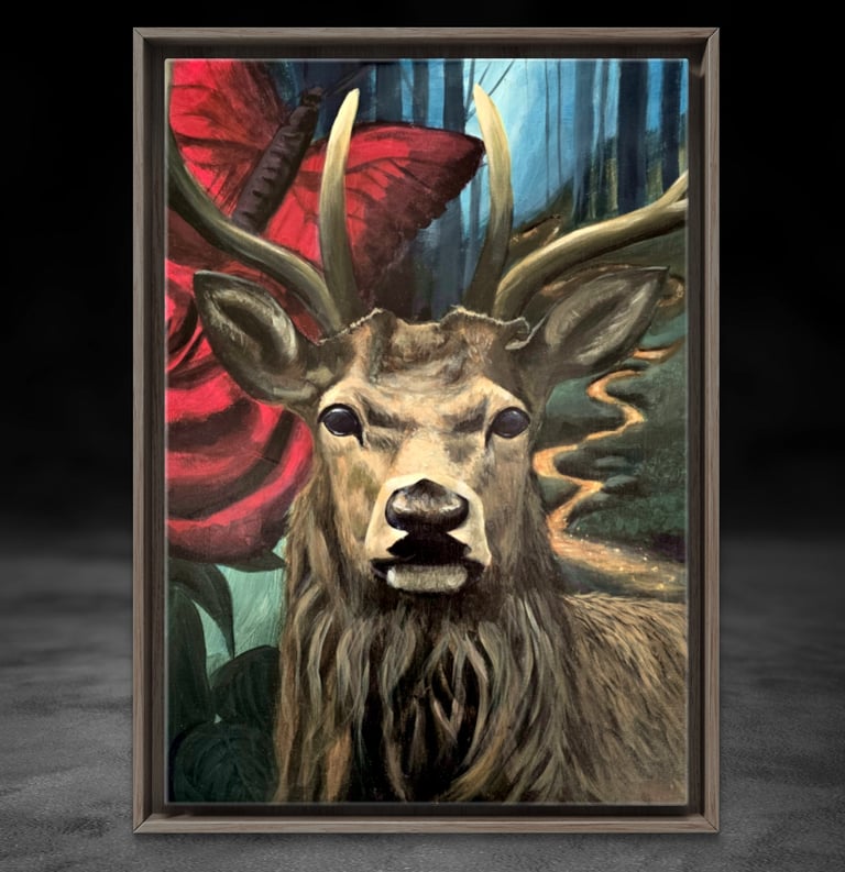 In the stillness of an ancient forest, between shadow and light, he emerges. A silent guardian, the spirit of the wild, carrying the forgotten wisdom of nature.